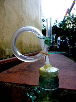 Gabriele, un lettore, mi ha suggerito nei commenti un metodo per evitare l’esplosione della bottiglia quando si apre (come è succeso a me nonostante avessi lasciato lo spazio vuoto in cima alla bottiglia). Guardate la foto qui, che mi ha consigliato Gabriele per vedere come creare un sistema utile e sicuro per evitare la pressione eccessiva all’interno della bottiglia.